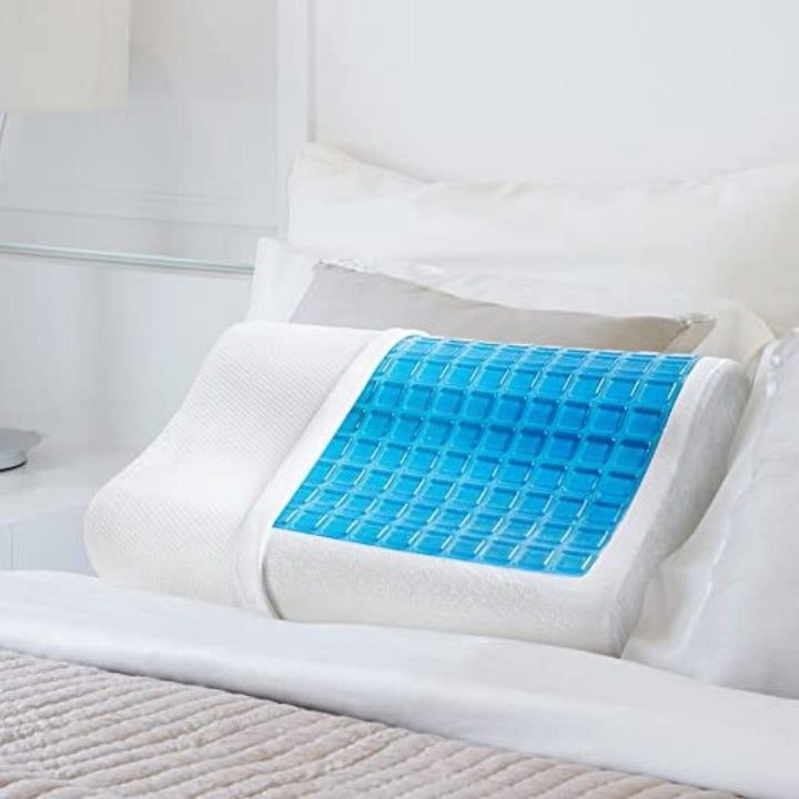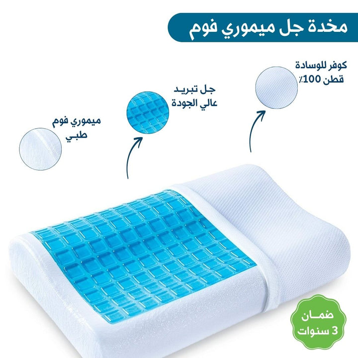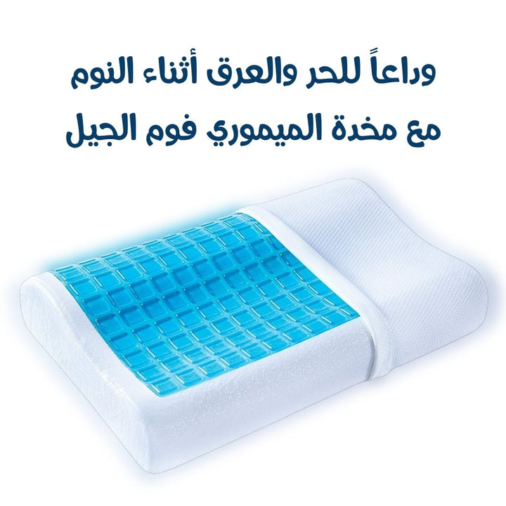 الوصف : مخدة طبية ميموري فوم مزودة بطبقة جل للتبيريد ، بتصميم كيرفي لدعم وراحة الرقبة أثناء النوم بجانب مرتفع وجانب أخر منخفض لتناسب كل من يرغب بالنوم على الارتفاع العالي او المنخفض ، تصميمها الكيرفي يتناسب مع توصيات أطباء العلاج الطبيعي ، وطبقة الجل تعمل على تبريد الجسم أثناء النوم والتخلص من الحر.
