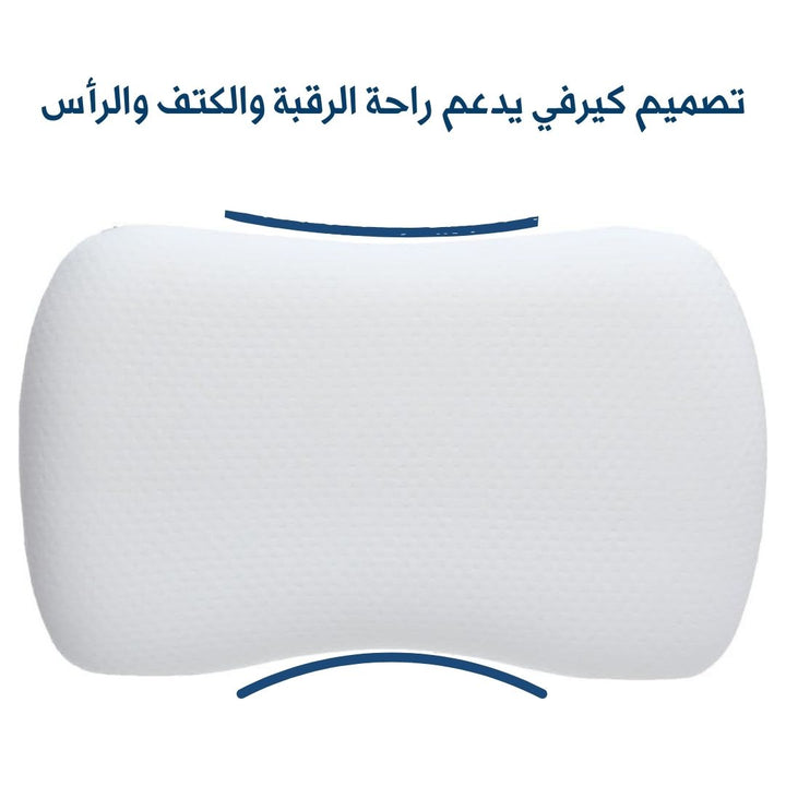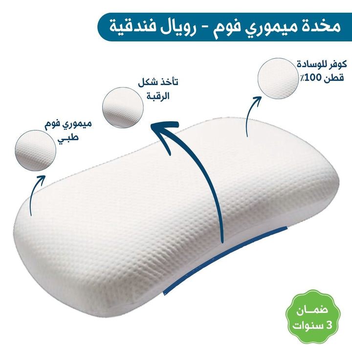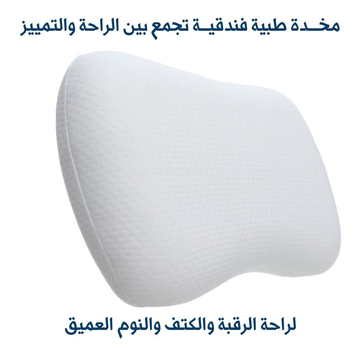 الوصف : مخدة فندقية من الميموري فوم ، تجمع بين راحة المخدات الطبية و شعور التميز بالمخدات الفندقية ، تصميم كيرفي يأخد شكل الكتف والرأس للتخلص من ألم الرقبة أثناء النوم ، تصميمها الكيرفي يتناسب مع توصيات أطباء العلاج الطبيعي.